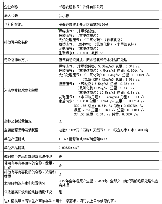 清洁生产审核重点企业相关信息公布情况(安通林)