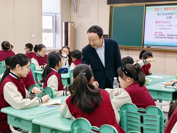 “为什么暴雨预警用不同颜色分级?”杨老师以生活化命题叩开概率课堂之门。学生们通过转盘实验验证猜想,在硬币擂台赛中具象化概率模型。依托超市促销博弈、红绿灯算法推演等真实情境任务,初中数学思维逐步融入小学课堂,抽象公式在“做数学”过程中化作可触摸的思维工具。