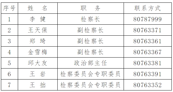 现设有第一检察部、第二检察部、第三检察部、政治部、办公室五个内设机构,另设有司法警察大队。