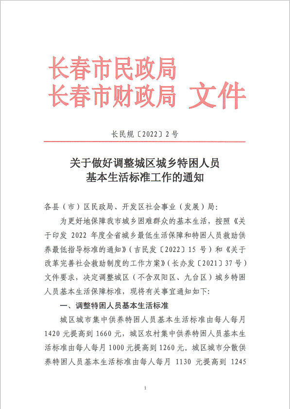 关于做好调整城区城乡特困人员基本生活标准工作的通知