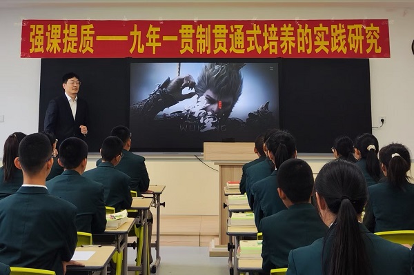 孙靖淇老师以当下热门游戏《黑神话·悟空》作为课堂导入,围绕“分析孙悟空的形象”这一核心任务,引领学生探究孙悟空的成长经历。以开放性问题收尾,促进学生思维能力提升。整节课紧紧围绕名著内容本身,深挖文本,关注学生核心素养的培育,以中华传统文化为载体,厚植学生的文化底蕴和文化自信。