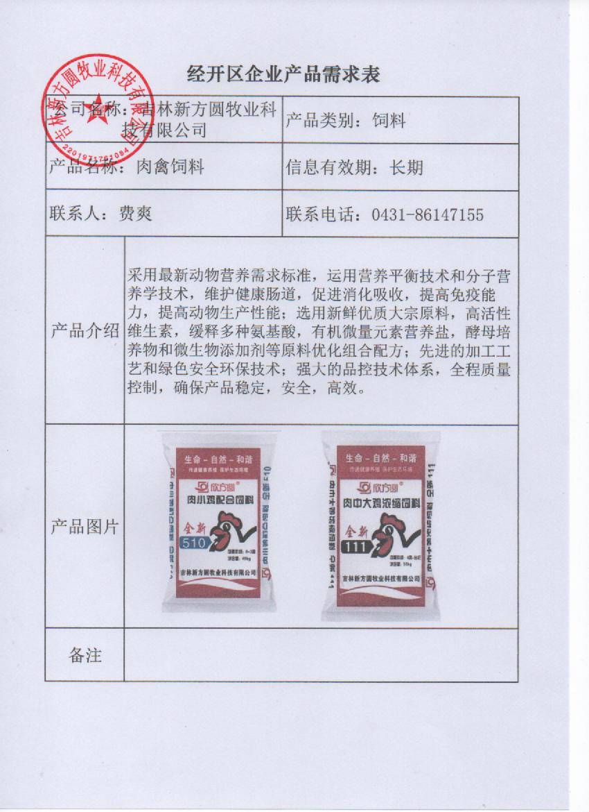 吉林新方圆牧业科技有限公司--肉禽饲料
